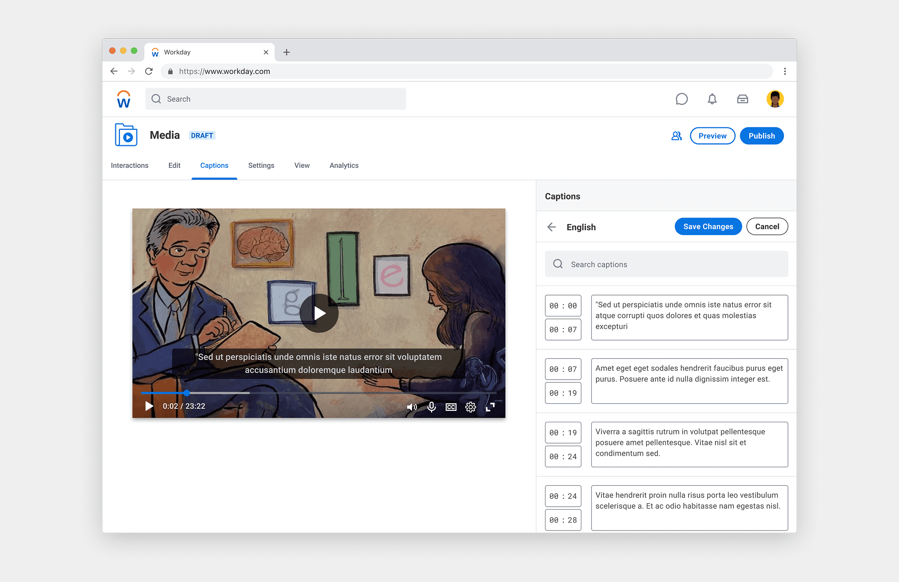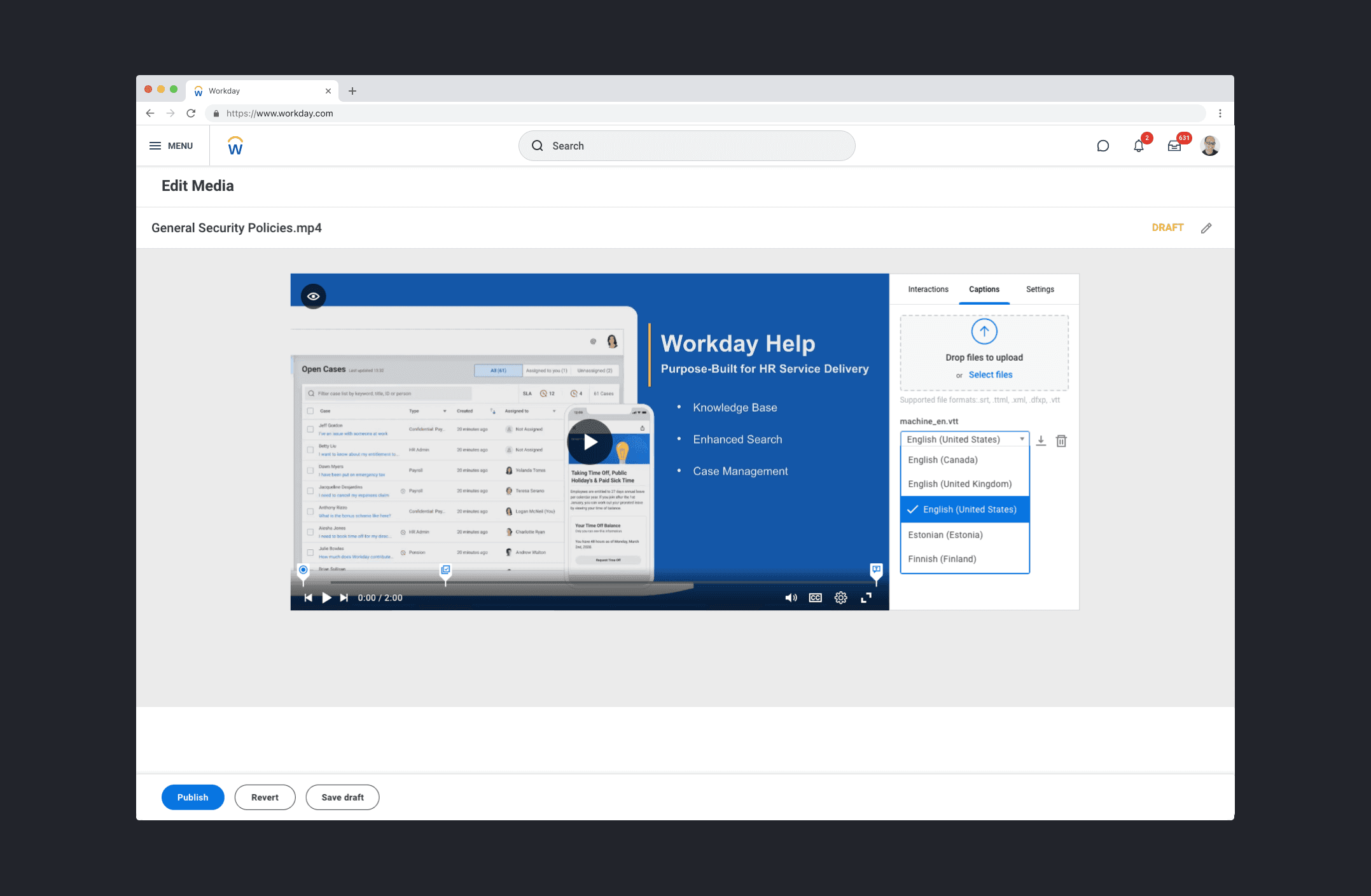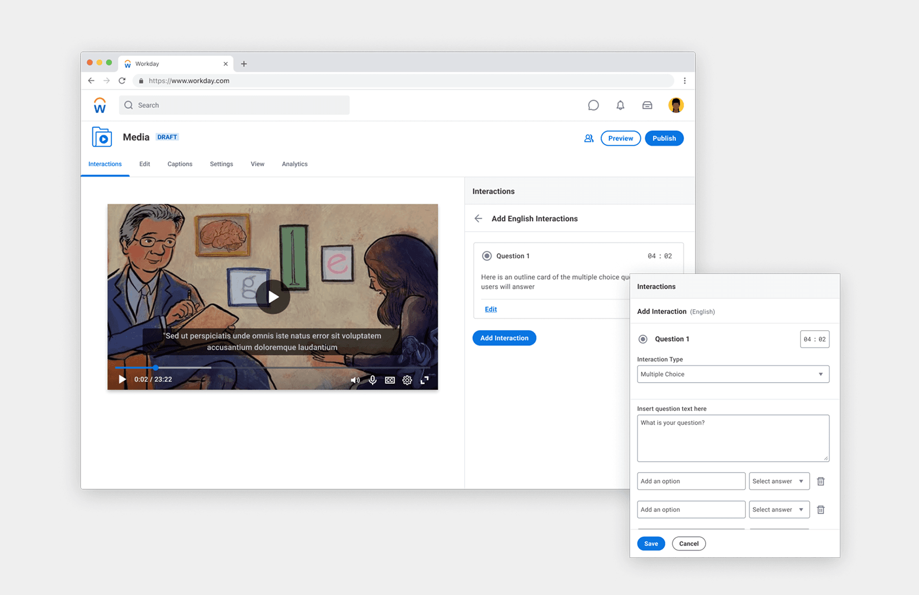 "In close collaboration with product, I developed the UX vision for a reimagined Workday Media, designed to improve the admin user’s ability to create and publish videos, expand its offerings to different application partners, and increase Media usage across Workday."