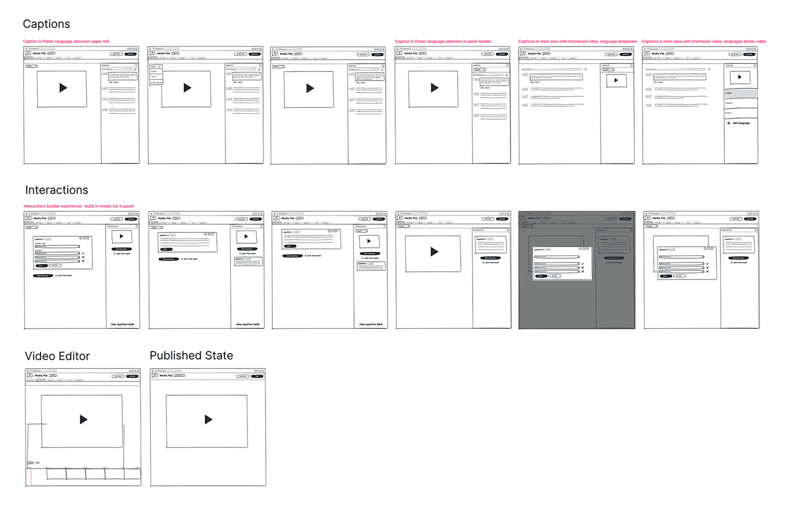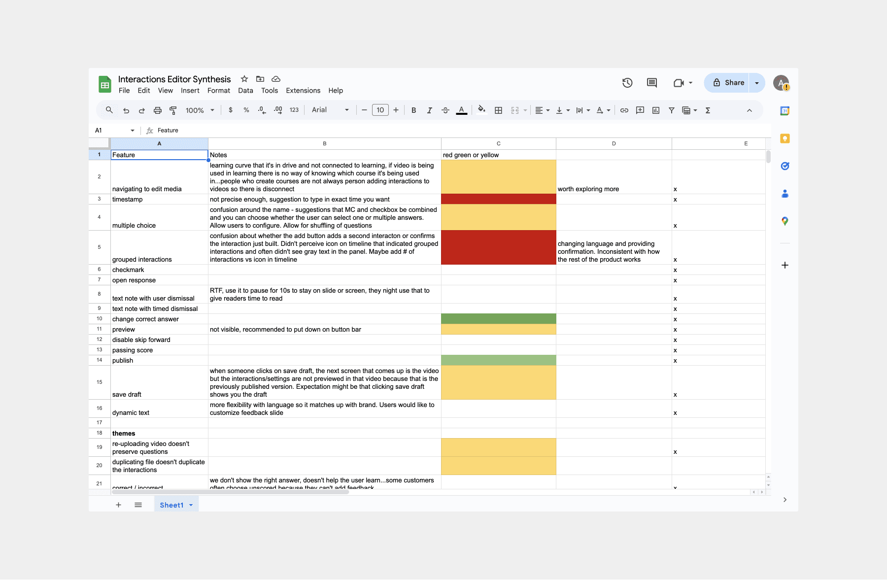 Synthesis sheet of results from user interviews exploring the interactions editor